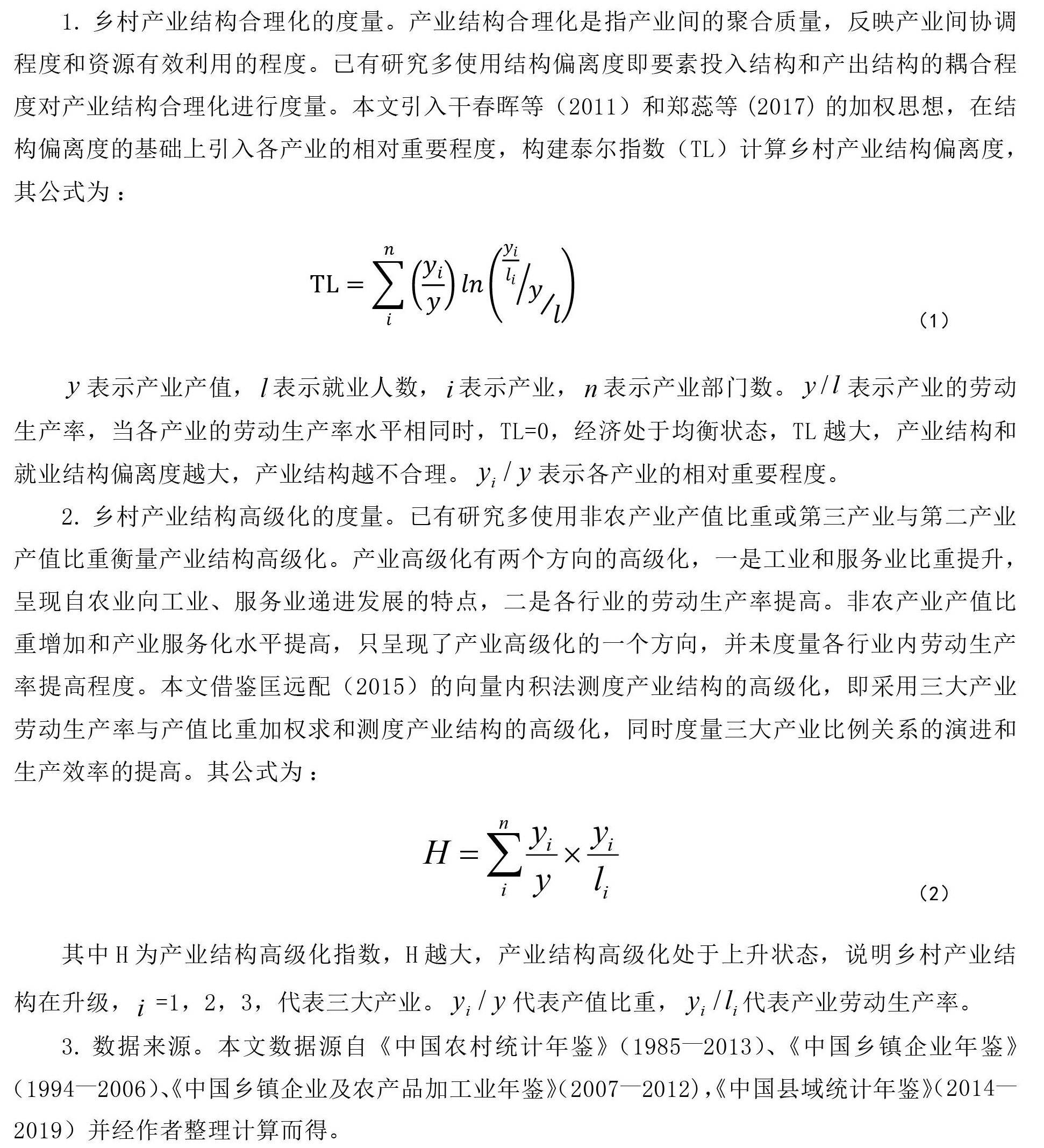 摘要:党的十九大报告提出实施乡村振兴战略,明确提出产业兴旺是乡村振兴的基础。乡村产业结构是随着时代发展而变迁的,文章通过构建泰尔指数和向量内积法定量测算我国乡村产业结构合理化和高级化水平,基于两个维度的测算结果分析我国乡村产业结构的演进历程。研究发现:我国乡村产业结构的演进具有典型的阶段性、区域性特征。工业化和城市化是我国乡村产业结构演进的背景,制度创新是乡村产业结构演进的根本原因,供给侧解放乡村