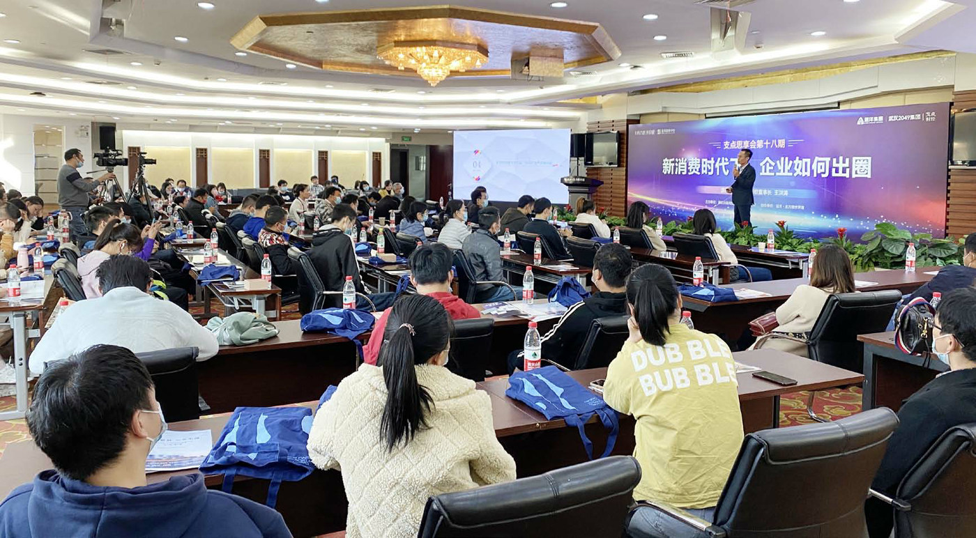 第十八期支点思享会活动现场 “新消费时代下,企业如何出圈?”11月13日,在第十八期支点思享会上,武汉宁美互联科技股份有限公司(以下简称“宁美互联”)董事长王洪涛,与100多名与会者进行了面对面分享和交流。此次活动由湖北日报传媒集团《支点》杂志主办,远洋·东方境世界观协办。 活动现场,王洪涛以宁美互联为例子,分享了企业如何快速“出圈”的经验:面对变化,企业需要感知变化并拥抱变化;新