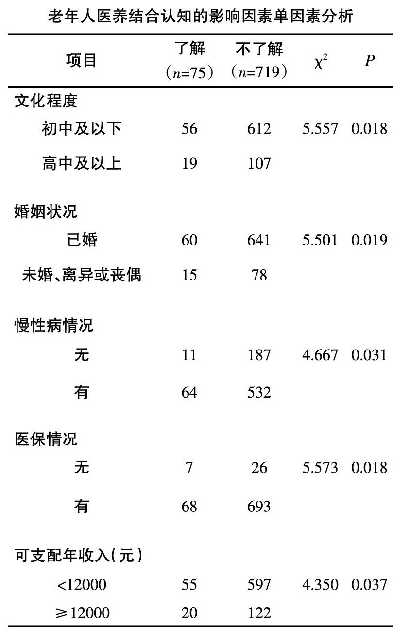 平顶山市农村老年人医养结合认知现状调查及影响因素分析
