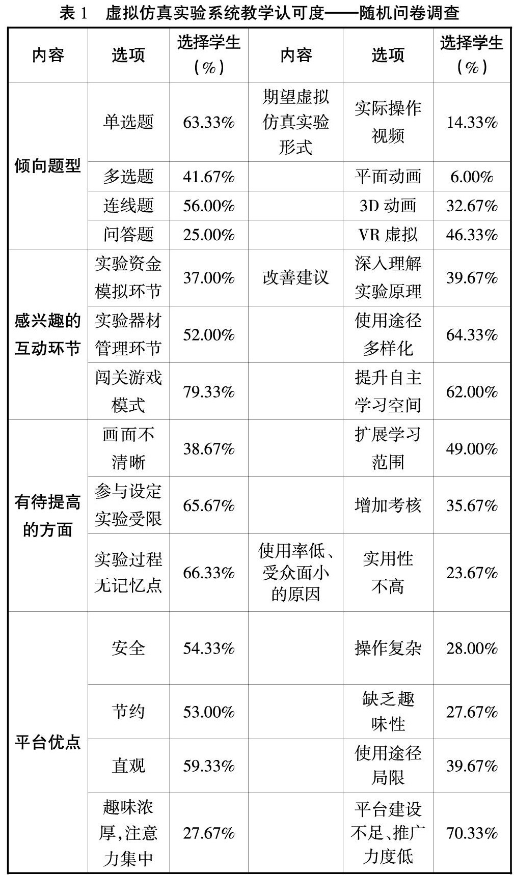 [摘 要] 采用问卷调查虚拟仿真实验平台在本校学生中的接受度和满意度。大多数学生能够使用虚拟仿真实验完成预习和复习任务,体验效果良好;约59%的学生认为,虚拟仿真实验因其依赖软件的特性极大减少经费消耗;61%的学生觉得对自己的学习有提升。学生更倾向于短视频模拟实验,近七成希望实验时长控制在20分钟内。通过学生反馈的问题,提出整改建议,以期使虚拟仿真实验平台能更好地服务于医学机