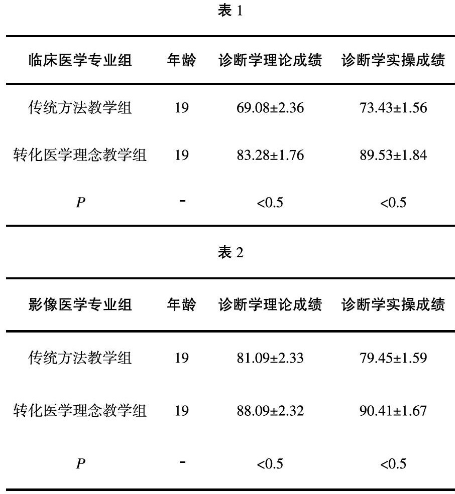 [摘 要] 目的:通过探索转化医学理念融入民族地区诊断学教学新路径,旨为提升诊断学教学理论转化为实践的有效性提供科学指导。方法:于黔南医专2017年9月接收的临床医学专业和影像专业学生中,采用随机双盲法分别各抽取200例学生入组研究,每个专业分别划分两组,即传统方法教学组和转化医学理念教学组。结果:相对传统方法教学组,转化医学理念教学组的学生对诊断学理论知识和诊断临床实践操作