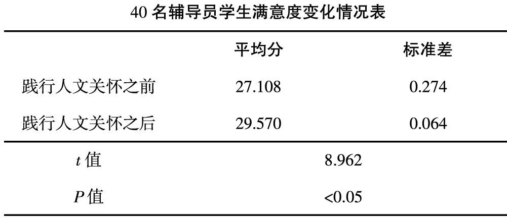[摘 要] 辅导员已发展成为职业院校思政工作和日常事务管理的一个不可或缺的群体,辅导员在职业院校学生的成长成才过程中发挥着重要作用,扮演多种角色,是学生成长的呵护者,是学生的良师益友,也是学生前进道路上的明灯。首先分析了当前职业院校辅导员存在的问题,针对这些问题提出了人文关怀思想。案例表明,践行人文关怀前后,学生对辅导员的满意程度得到了显著提高,而且队伍评价也趋于一致性。