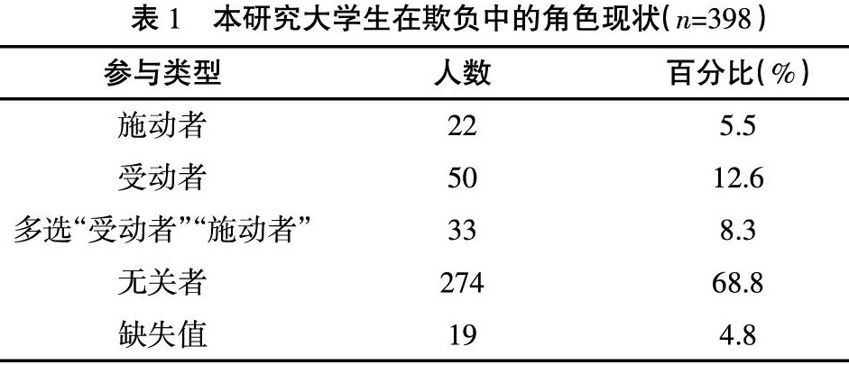 [摘 要] 目的:探讨容纳他人和自我控制在羞怯与欺负之间的中介作用。方法:采用大学生羞怯量表、容纳他人量表、大学生自我控制量表和欺负问卷测量了398名大学生。结果:羞怯与容纳他人、自我控制均呈显著负相关,与欺负呈显著正相关;容纳他人和自我控制均和欺负呈显著负相关;容纳他人和自我控制在羞怯与欺负之间起完全中介作用。结论:羞怯通过容纳他人和自我控制的中介作用影响个体的欺负行为。