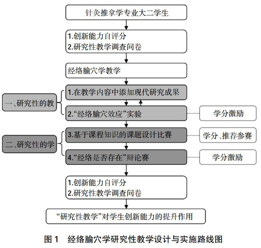 [摘 要] 创新能力培养是时代赋予大学教育的任务,在课程教学中开展研究性教学,实施方案包括“研究性的教”与“研究性的学”,让师生共同在研究中学习,实现教学与研究相长,培养学生的创新精神与能力。 [关 键 词] 经络腧穴学;研究性教学;创新;教学设计 [中图分类号] G642 [文献标志码] A [文