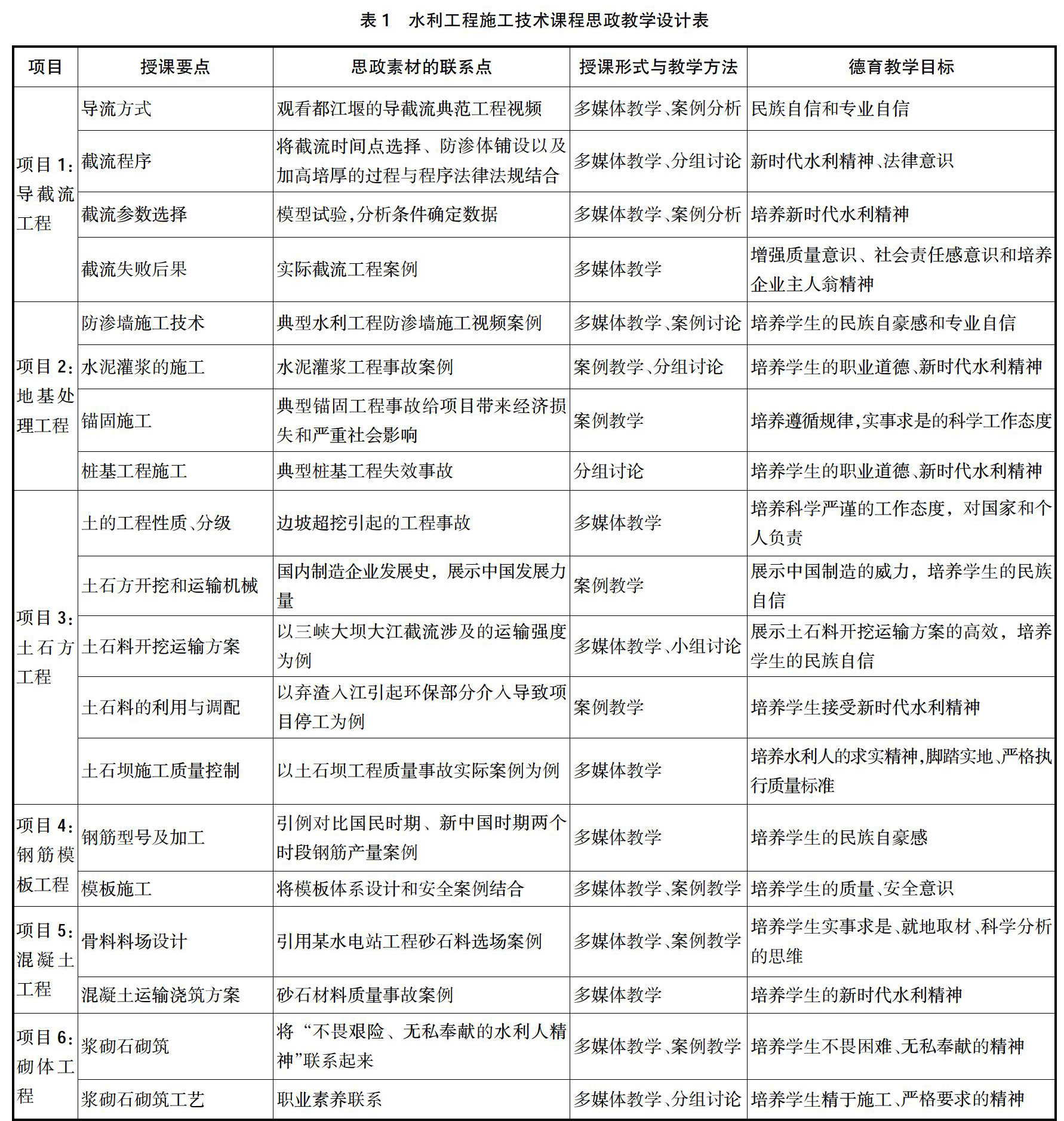 [摘 要] 从高职院校全员、全过程、全方位育人目标出发,指出当前“专业思政”实施过程中存在的问题,提出水利类专业课程思政的实施途径,并以专业核心课程为例,从教学目标设定、学习情境设计、课程考核评价设计、教学资源库建设和师资建设五个方面阐述课程思政建设内容,展示了如何将德育元素融入专业知识教育中,培养学生正确的价值观和良好的职业道德。 [关 键 词] 高职;课程思