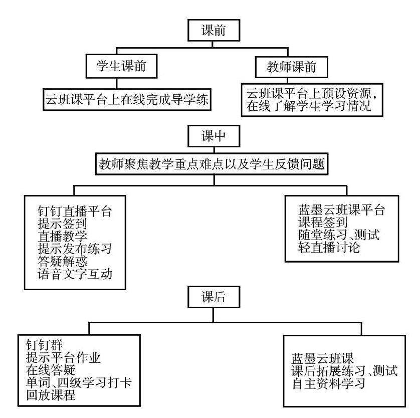 [摘 要] 主要研究基于蓝墨云班课的授课模式在大学英语“教、学、测、练”的运用模式,通过在线学习答疑、在线签到、课后作业布置批改以及过程性数据统计分析等信息化手段来跟踪学生学习状态和学习成果,真正调动不同层次学生的学习积极性与主动性,高效完成不同层次的学习任务,每个学生都能在这个教室里展现自我的英语水平,促进英语进步。在此基础上提出适合大学英语直播授课模式下的教学原则与教学策