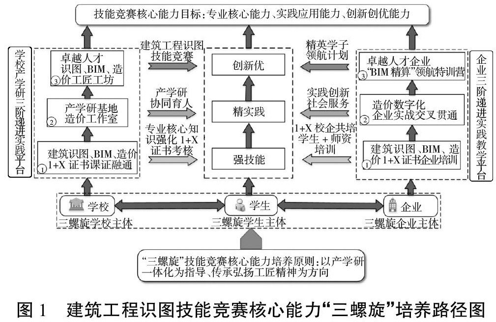 [摘 要] 分析了工程造价专业学生参加建筑工程识图技能竞赛需要具备的竞赛核心能力,提出了基于三螺旋理论,通过1+X书证融通、校企协同育人、工匠工坊及企业领航特训营等路径,训练学生参加建筑工程识图等技能竞赛,提升学生专业核心技能、实践应用能力和创新创优能力,推动实践教学改革。 [关 键 词] 三螺旋;技能竞赛;核心能力;1+X;工匠工坊 [中图分类号] G71