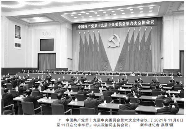 一 2021年11月8日至11日,中国共产党第十九届中央委员会第六次全体会议胜利举行。全会听取和讨论了习近平总书记受中央政治局委托作的工作报告,充分肯定党的十九届五中全会以来中央政治局的工作,审议通过了《中共中央关于党的百年奋斗重大成就和历史经验的决议》(以下简称《决议》),审议通过了《关于召开党的第二十次全国代表大会的决议》。习近平总书记就《中共中央关于党的百年奋斗重大成就和历史经验的决议
