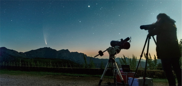 彗星与“追星人”。摄影/虞骏 北京时间2016年9月16日,是中国传统的中秋佳节。这一天,在英国伦敦市东南郊的格林尼治小镇,最热闹的地点当属那幢标志性的建筑——英国格林尼治皇家天文台。当天,这里正在举办一年一度的年度天文摄影师大赛颁奖典礼。 那一届大赛,吸引了来自全球80个国家超过4500幅参赛作品,甚至还有来自南极的照片。有意思的是,入围最终颁奖典礼的天文摄影师们,在事先只会被主办方邮件告知