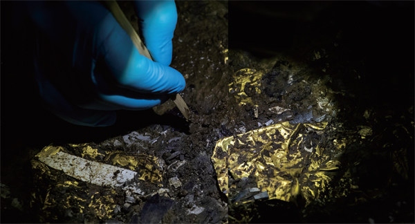 在位于四川省广汉市的三星堆遗址5号“祭祀坑”中,考古人员在清理新发现的金面具残片(3月1日摄)。 沉睡三千年的金器青铜器现世,三星堆遗址再惊天下! 太多太多的未解之谜在吸引着我们的目光。2019年10月,在古蜀文明保护传承工程实施的大背景下,四川省文物考古研究院为解决三星堆遗留的众多学术问题,在三星堆遗址开启多点位考古勘探,最终在祭祀区发现了新的6座祭祀坑,祭祀区新一轮发掘由此在去年10月正式