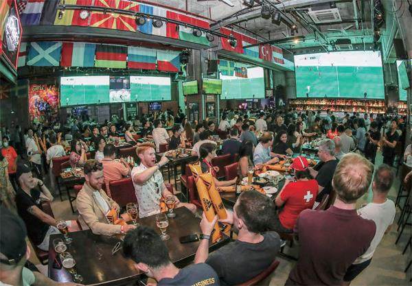 上海静安区的凯吉斯餐吧内不少球迷用啤酒配炸鸡度过欧洲杯之夜。摄影/李铭珅 无论是进球时同球员一同振臂高呼,抑或是面对球队出局而流下伤心的泪水,总之全世界足球迷们翘首以盼的热闹夏天,在2021年再度到来。北京时间6月12日,因疫情推迟一年的2020年欧洲杯在意大利罗马拉开序幕。 开赛至今已逾两周,球队激战正酣。在半决赛到来之际,英国政府已经确认,欧洲杯两场半决赛和决赛将分别向6万名球迷开放。鉴于