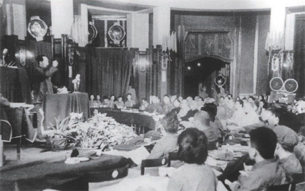 1949年,新政协筹备会常务委员会第一次全体会议开幕式。 1936年7月16日,美国记者埃德加·斯诺长途跋涉后在“红都”保安(今延安市志丹县)与毛泽东进行了一次重要的谈话,主题是抗日民族统一战线。 熄灯号吹过,斯诺如约而至。毛泽东搁下正在写作《中国革命战争的战略问题》的笔,交叉双腿,背倚窑壁在土炕上坐定。斯诺坐在他对面的方凳上。谈话从晚9时许延续至次日凌晨两点。 中国如何战胜并消灭日本帝国主