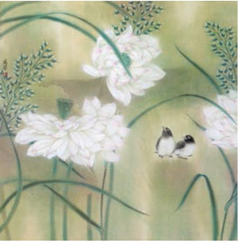 小憩。 每次在展览中看到画家万芾的花鸟作品,都会给人以美的享受。在琳琅满目、五彩纷呈的展品包围中,她的作品总能以安谧和宁静打动每一个观众。那些看似简约的画面,糅合着平面构成的因素,精心营造出的温暖氛围,烘托出那些生机勃勃的小鸟,蕴含着生命的律动。常常会令人想起蒙田的那一段话:“在我看来,最美丽的人生是以平凡的人性作为楷模,有条有理,不求奇迹,不思荒诞。”因为悦目画面的背后,是美丽的人生;美丽人生