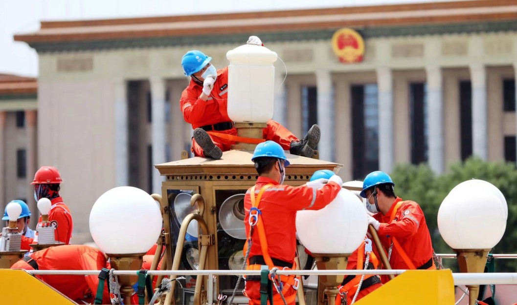 在天安门广场和长安街上,清晨国旗升起,华灯熄灭;傍晚国旗降落,华灯初上。天安门广场上守护国旗的“国旗班”家喻户晓,但鲜为人知的是,这里还有另外一批默默的守护者——“华灯班”。他们的职责和任务,就是守护华灯。 华灯班是国网北京市电力公司所属北京市城市照明管理中心生产一线班组,主要负责对天安门广场及长安街华灯进行清洗、检修和运维,共有14人,平均年龄35岁。1959年,中华人民共和国