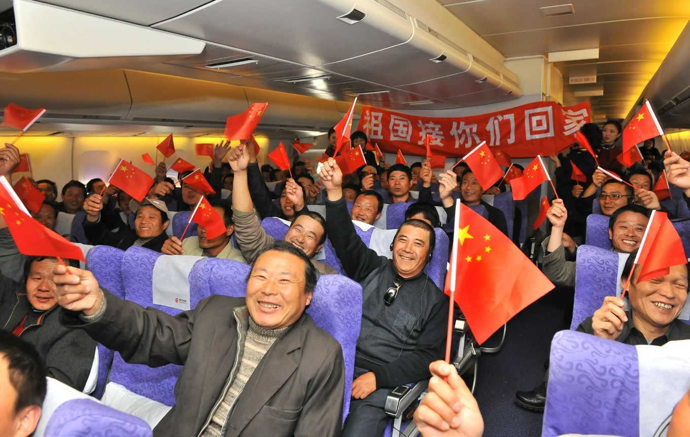 2022年3月5日,国航一架飞机上播放着机长的讲话:“当你们登上了国航的飞机时,就意味着踏上了祖国的国土。”这是一架奉命前往罗马尼亚布加勒斯特机场执行撤侨任务的飞机。机舱内四处悬挂着五星红旗,在熟悉的《我和我的祖国》旋律声中,机长的话让脱离乌克兰战火的侨胞不禁热泪盈眶。伴随着中国迅即展开对滞留乌克兰近6000名我国公民的撤侨行动,3月7日,国务委员兼外交部部长王毅在“两会”记者会上一句“每一位海外