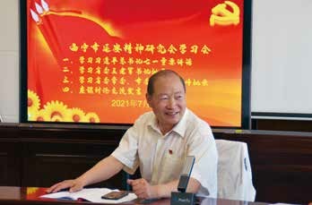市延研会会长刘德主持学习习近平总书记“七一”重要讲话并谈体会 7月6日至9日,本刊调研组一行由主编王素莉带队,来到美丽的高原古城西宁,就西宁市延安精神研究会学习贯彻习近平总书记致中国延安精神研究会第六次会员大会贺信精神、弘扬延安精神的情况进行采访调研。 在西宁,调研组一行访企业、进学校、到寺院,与青海省延安精神研究会、西宁市延安精神研究会以及市委宣传部、市委党校、市教育局、团市委等