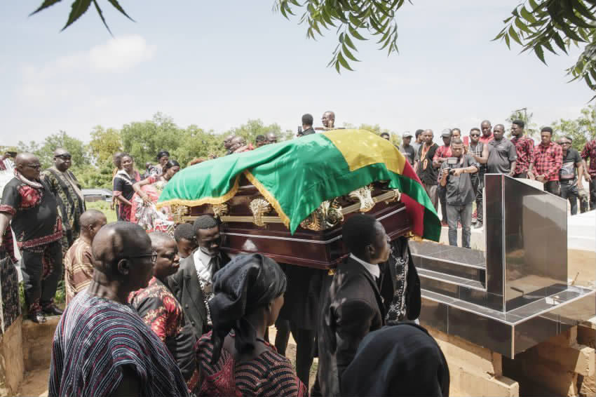 在加纳最令我惊奇的,是当地的葬礼。虽然加纳是一个文化多元和多种族的社会,不同族群有自己的家乡话,也有地方色彩浓厚的习俗,但人死后的葬礼“三部曲”,是全国上下都有的。 我刚到加纳的时候,看到有人家张灯结彩,院内有帐篷、椅子和饭桌,还以为那家人在庆祝什么节日呢。我好奇地问身边的加纳朋友:“他们在庆祝新年吗?还是开生日party?”友人略带责备地看我一眼:“才不是!家里有人过世。”原来在加纳,红色