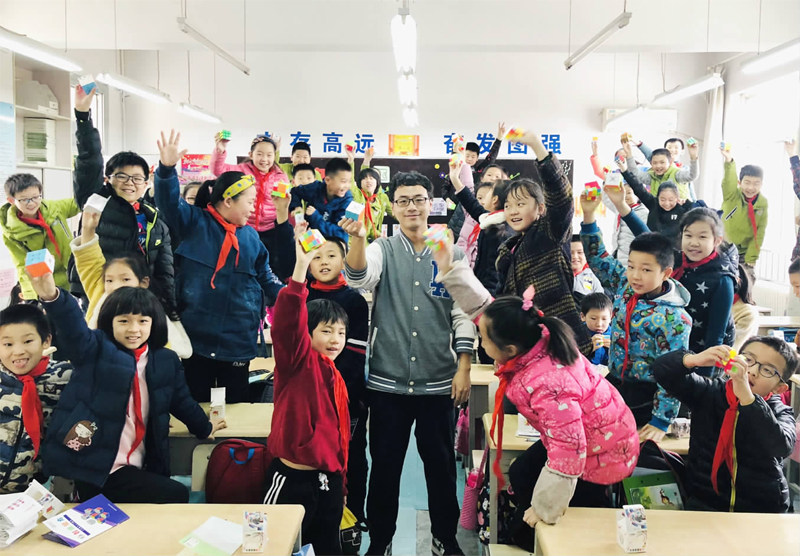 与魔方的不解之缘 夏焱(中)和魔方公益课的学生们在一起 2008年,上中学的夏焱第一次接触到魔方。课间,一群男生围在一起,一个人手里拿着一个魔方,只见一阵鼓捣之后,魔方就像被施了魔法一样,被整齐复原,夏焱对魔方立马有了兴趣。 他拿出平时积攒的零花钱,在放学路上买了一个魔方回家琢磨。刚开始,他完全是个“小白”,根本找不到快速还原魔方的技巧。后来,他有意识地从网上找一些资料学习,用专用的小本子记