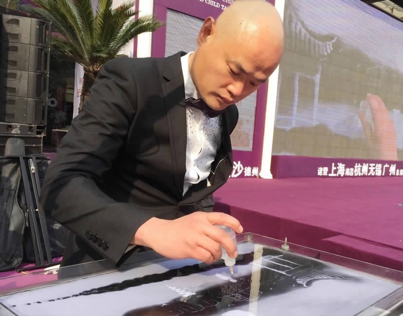见过纸上的水墨画,但你见过在水中作水墨画的人吗?因为独特的水墨画法,他还登上了央视舞台。 沙画是舶来品, 他想发扬中国的水墨艺术 张明聪自小喜欢画画,对画画的热爱可以说是到了如痴如醉的地步。小学的时候,上语文课,每篇课文他都会画一幅画,用画来表现课文的内容。老师看到后,还把他的画拿上讲台展示。 本文主人公 十多年前,张明聪在网上看到了一段国外沙画大师创作沙画的视频,被深深震撼到了。借助网