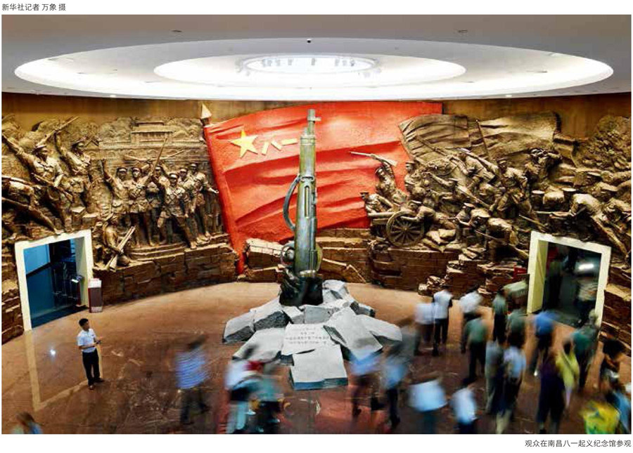 江西省南昌市中山路380号,南昌八一起义纪念馆坐落于此。在纪念馆序厅,墙上最突出位置刻印着两段红色文字,吸引人们纷纷驻足凝眸。 这是2017年8月1日,中共中央总书记、国家主席、中央军委主席习近平在庆祝中国人民解放军建军90周年大会上发表的重要讲话:“1927年8月1日,南昌城头一声枪响,拉开了我们党武装反抗国民党反动派的大幕。这是中国共产党历史上的一个伟大事件,是中国革命史上的一个伟大事件,也
