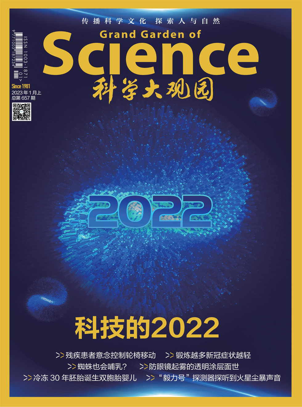 新的詹姆斯·韦布空间望远镜打开它的金色红外眼,瞥见了宇宙以及它深不可测的过去;一种比许多细菌细胞大近5000倍的巨大微生物被发现;多年生水稻品种的开发;对黑死病如何改变欧洲人基因有了新见解;由格陵兰永久冻土中保存的 200万年前的环境DNA重建古老生态系统;呼吸道合胞病毒疫苗有重大进展;美国国家航空航天局成功实施DART卫星任务。这是科技的2022,这是突破的2022。