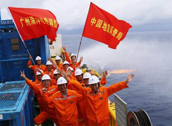 提高自主创新能力,建设创新型国家,是国家发展战略的核心,是提高综合国力的关键。从“嫦娥”探月到“天问”登火、从跑出“中国速度”的复兴号动车组到国产大飞机C919、从万米深潜到航母入列……中国以一系列突破性成就实现了历史性飞跃,让古老的东方涌动起创新之潮。 2017年5月18日,中国南海神狐海域可燃冰试采成功,我国成为世界上首个成功试采海域天然气水合物的国家。图为工作人员庆祝天然气水合物试采稳定产
