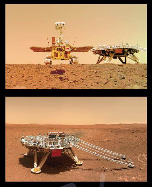 科技是国之利器,国家赖之以强,企业赖之以利,人民赖之以富。世界科技强国竞争,比拼的是国家战略科技力量。经过多年努力,我国科技整体水平大幅提升,我们完全有基础、有底气、有信心、有能力抓住新一轮科技革命和产业变革的机遇,乘势而上,大展宏图。 6 月11日,国家航天局公布了由“祝融号”火星车拍摄的着陆点全景、火星地形地貌、“着巡合影”(上图)和“中国印迹”(下图)等影像图。图片|国家航天局 6月17