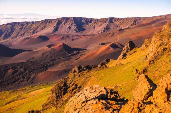哈雷阿卡拉火山 哈雷阿卡拉火山位于美国夏威夷茂宜岛,是世界上最大的死火山,在1790年最后一次喷发。火山口海拔高度3055米,火山占茂宜岛陆地面积的75%,因此,从茂宜岛的任何方向,均可以仰望耸入云端的火山,以及其缓长的山坡。由于哈雷阿卡拉独特的火山地貌,是世界上最像月球表面的地方,当年美国执行登月计划时,为了让宇航员熟悉月球表面环境,特别安排他们在这里进行训练。 布斯卡火山 布斯卡