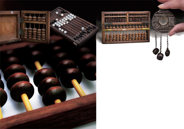 木盒算盘。 游珠算盘(算盘的前身)。 双腰算盘。 银饰挂件算盘。 中国古代有四大发明,造纸术、指南针、火药、活字印刷术。最早提出四大发明概念的英国汉学家李约瑟,又将珠算誉为中国古代的“第五大发明”,算盘被称为最古老的计算机。 从1998年至今,我一直从事珠算教学工作,担负着传承珠算文化的重任。2012年,我还成为了“程大位珠算法”国家级非物质文化遗产项目代表性传承人。很荣幸能和大家一