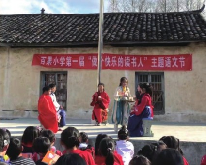 百果小学地处怀玉山脉,毗邻三清山,是一所名副其实的乡村校园,学校两百多学生,无一例外,都是留守儿童。他们眼中的世界,除了大山、小溪、田野、蓝天、白云这些真实的存在外,就是手机、电视中的虚拟存在,所以,乡村的孩子们,更容易被手机、电视这些稀罕的电子产品所吸引。这应该也是目前绝大多数学校面临的问题。 “鸟欲高飞先振翅 ,人求上进先读书”,这是我到百果小学后和老师学生说的最多的一句话。带着孩子一起读书