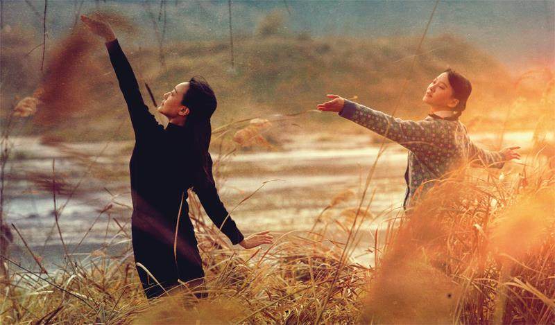 《远山淡影》剧照(图片来源:豆瓣) 雾蒙蒙的江边,一片芦苇浅滩,几棵枯藤老树,乌鸦不时地发出哀鸣,显得冷落又暗淡。 突然,镜头一转,一位身着蓝色毛衣、面色苍白的少女映入眼帘。她躺在一个狭窄的浅坑里,睁大着眼睛,面无表情,任由一把又一把的黑土撒在她的身上。而随着黑土不断增多,少女的半身逐渐被掩盖,但她的眼睛仍然直勾勾地盯着前方,仿佛在控诉着命运的不公。 浅滩之上,泛黄的芦苇荡中,一个身穿黑