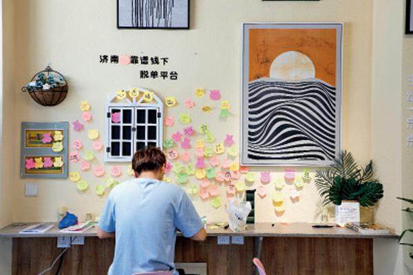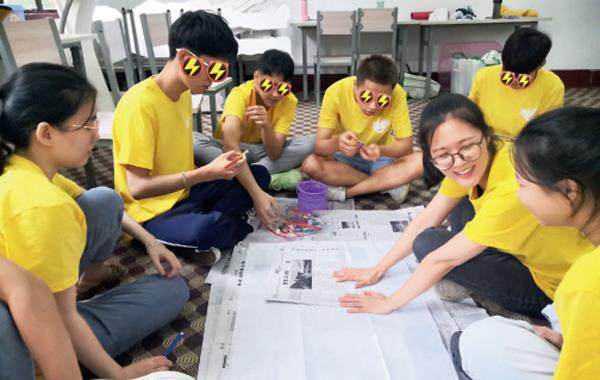 陈媚(右二)和青少年一起参加团建活动,共同设计队旗。(图片来源:受访者供图) 13周岁的小峰已经快一年没有去上学了。无论父亲如何管教,他就是提不起学习的兴趣,百般无奈之下,小峰父亲终于找到了一颗“救命稻草”,他给福建省福州市台江区鲲鹏青少年服务中心社工陈媚打了一通电话,向陈媚进行求助。 类似的求助,在陈媚加入鲲鹏青少年服务中心的六年时间里,遇到过几百起。陈媚主要从事青少年救助工作,帮助问题少年