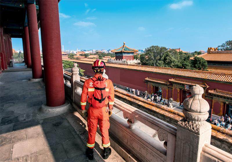 国庆节等重要节日期间,故宫特勤消防救援站指战员在故宫神武门巡视检查。 夜幕降临,故宫的红墙黄瓦下,游客已经悉数退场。东华门内4名消防指战员从故宫特勤消防救援站走出,开始每日例行消防夜巡工作。电线线路、用电设施、灭火器、高压消火栓的检查日复一日,为的是故宫消防的绝对安全。 故宫特勤消防救援站是在周恩来总理亲切关怀下于1970年成立的,最早叫消防排,1975年更名为故宫消防中队,2016年更名为故