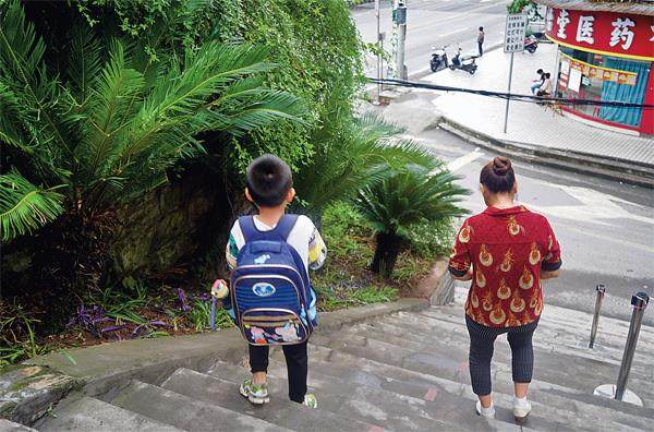 小鑫在上学途中遇到台阶时,会坚持自己行走。(图片来源:受访者供图) 看到小鑫的第一眼,会被他那双大大的眼睛所吸引。透亮的眼珠带着淡淡的棕色,十分好看,可当你直视这双眼睛时,却看不到眼里有任何的波澜。 这双有别于常人的眼睛,不断提醒着小鑫是一位盲童的事实。然而更让小鑫感到难过的是,由于失明,上学读书成了对他来说最为困难的事情。 一场疾病夺去了双眼 小鑫并不是先天性失明。2016年,三岁的小鑫