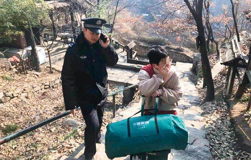 背着挂面巡山的社区民警