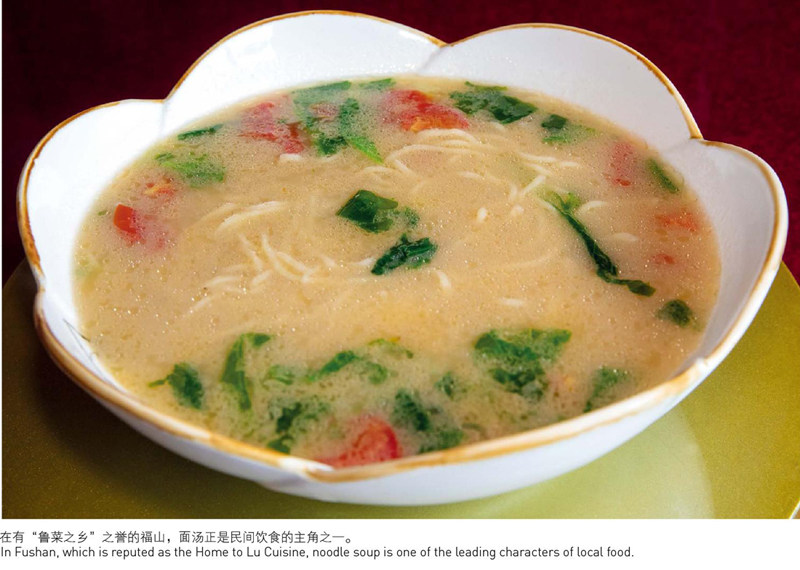 时下,不少酒店都把炝锅面、地瓜面汤、豇豆汤当作特色饭食应市。在有“鲁菜之乡”之誉的福山,面汤正是民间饮食的主角之一,炝锅面、地瓜面汤更是家常得不能再家常,普通得不能再普通,家家主妇都会做。 福山面汤是福山大面、福山面条的姊妹,历史悠久,是从汉朝的汤饼演变而来的,2000多年后仍保留着“汤”的名称和痕迹。 福山大面、福山面汤和福山面条,不是一种饭,福山大面又称福山拉面,是摔拉成条的,面条柔滑软糯