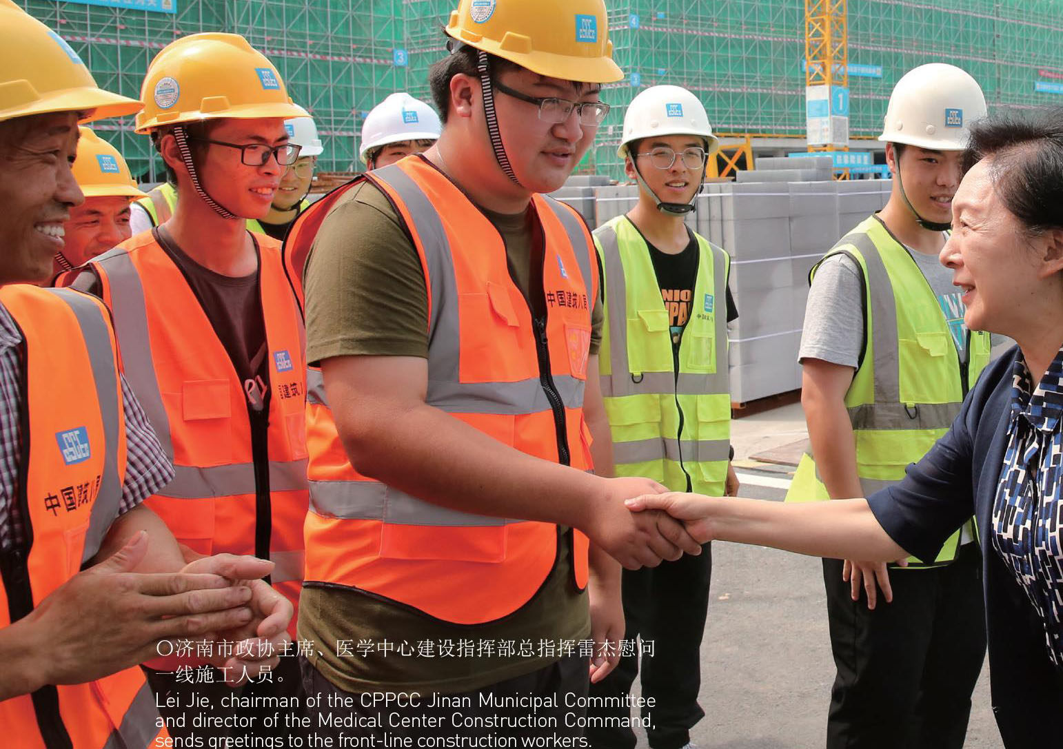 Major Project Construction in Full Swing 2021年7月,济南国际医学科学中心的活力与济南的夏天一样热气腾腾。 总投资648亿元的近30个项目建设正酣,高标准建设的建筑厂房拔地而起,宽阔平坦的市政道路不断延伸,条条管道陆续铺展,为医学中心产业高质量发展注入新活力、积蓄新动能。 7月13日,济南市政协主席、医学中心建设指挥部总指挥雷杰一行深入树兰(济南)