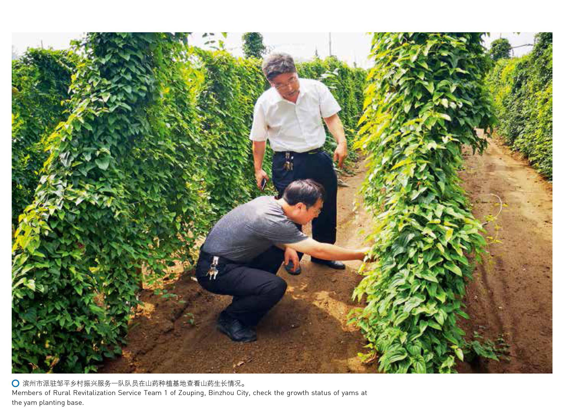 New Look of“Land of Yams” 邹平市长山镇是历史上著名的山药之乡,以盛产细毛长山药闻名全国。近年来,由于人工挖掘山药成本高、耗时多、效率低,导致山药种植面积逐年缩小。2019年7月,滨州市派驻邹平乡村振兴服务一队来到长山镇,通过深挖山药文化,做大做强山药产业,让长山山药品牌再次叫响全国。两年来,他们按照全省“万名干部下基层”工作要求,扎根沃土,开展“田间实践”,在滨州市41