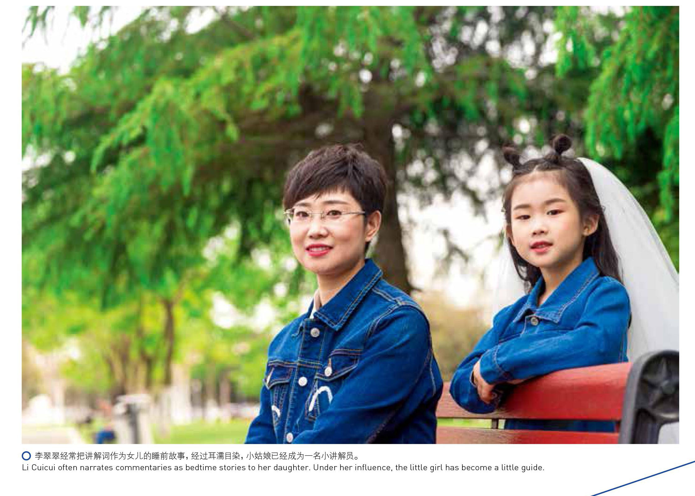 Li Cuicui: To be a Good "Bell Ringer" of History 一身藏青色工装,一双黑皮鞋,一个装着蓝牙耳机的黑布包,这是胶东(威海)党性教育基地刘公岛教学区讲解员李翠翠的“标配”,不知不觉,她已经工作了16个年头。自从201 8年为习近平总书记进行讲解之后,李翠翠的肩头便多了一份荣耀,也多了一份责任。 常讲常新 作为甲午海战最后的主战场、甲午海战英烈埋骨之