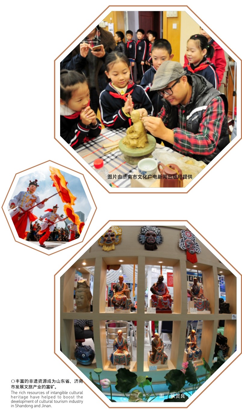 山东既是文化大省,也是非遗大省,遍布全省各地的各级非遗项目,是孔孟之乡最美丽的风景之一。据统计,目前全省共普查各类非遗线索120多万条,共有联合国教科文组织认定的“人类非遗代表作名录”项目8个,国家级名录173项,数量位居全国第二位。 省会济南,作为中国历史文化名城,同时也是中国非遗博览会的永久举办地,目前入选联合国人类非物质文化遗产代表作名录1项,非物质文化遗产代表性项目名录国家级11项,省级