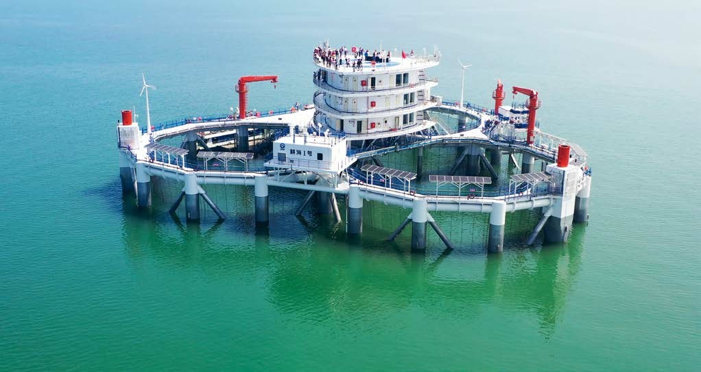 海上游钓、近岸浮潜、海上冲浪(海上娱乐项目)等海洋旅游新业态项目,正在仙境海岸蓬勃兴起;烟台拥有耕海一号、清泉海洋(牧场)公园、大钦岛海钓基地等一批海洋新业态项目,烟台海洋牧场和海钓基地建设已颇具规模。同时,围绕海上旅游的游轮游艇企业也茁壮成长起来,在绵延1038公里的海岸岛岸线上,野奢营地、房车营地等个性化服务也随之落户深耕。 耕海1号海洋牧场 “耕海1号”装备型海洋牧场综合平台