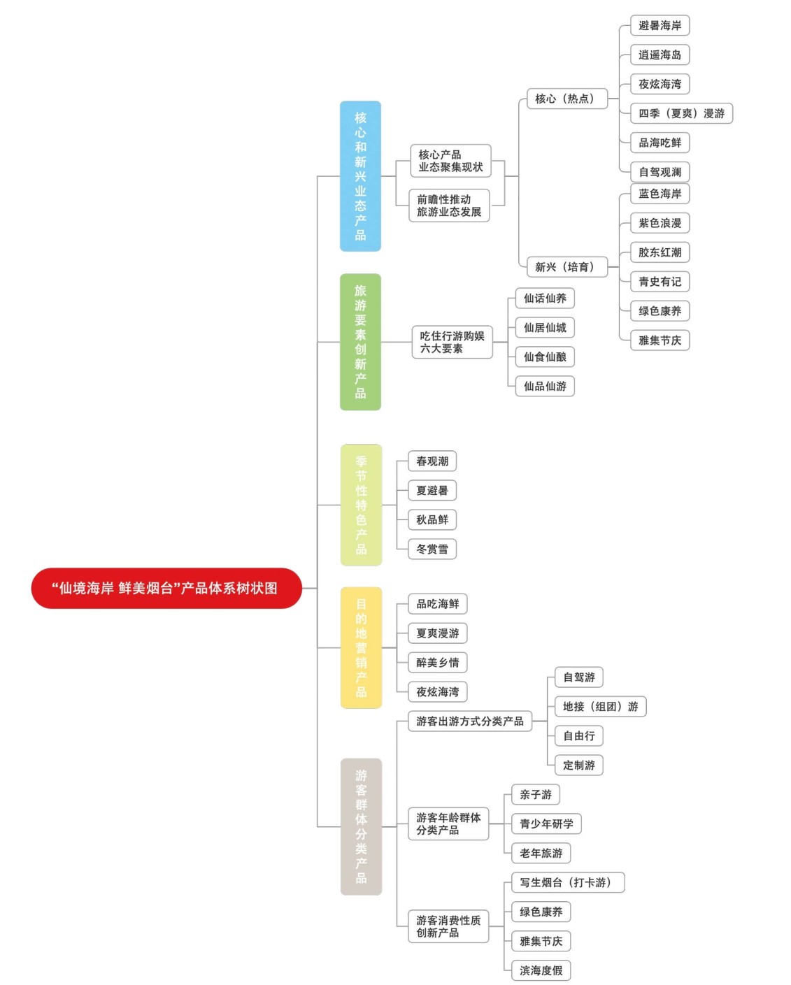 以“畅游仙境海岸,共享鲜美生活”为主题,以“春寻、夏爽、秋赏、冬乐”四季游为时间轴线,精心策划具有烟台地域特色的文化旅游产品和活动。 五大主导产品贯穿全年。红色旅游产品,重点打造烟台山、昆嵛山等“红色旅游经典景区”,推出“胶东红潮”8大系列20条精品“红色+”线路,举办百场红色旅游活动。乡村旅游产品,以“鲜美田园”休闲旅游廊道为重点,策划赏花、踏青、采摘等亲近乡村、亲近自然的旅游活动。城市休闲产