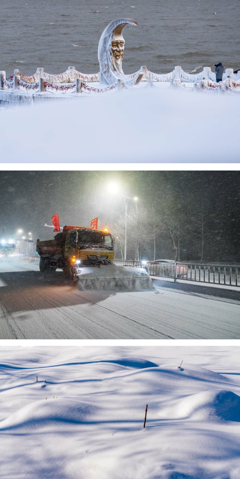 岁末年初,一场四年来最大的寒潮席卷烟台,带来了大范围的强降温、降雪和大风。烟台气温最低跌至零下18℃,积雪厚度超过30厘米。 烟台是有名的“雪窝”。鹅毛般的雪花纷纷扬扬,轻轻地落在房顶,落在地面,落在山上,落在海滩……顷刻间,漫天皆白,遍地银装,烟台变成了无限幽静秀美的银白色世界。 瑞雪兆丰年,厚绒绒的积雪,预示着来年热闹的丰收图景。大雪让烟台裹上了人们期盼的冬日盛装,也带来了最美好的期盼。