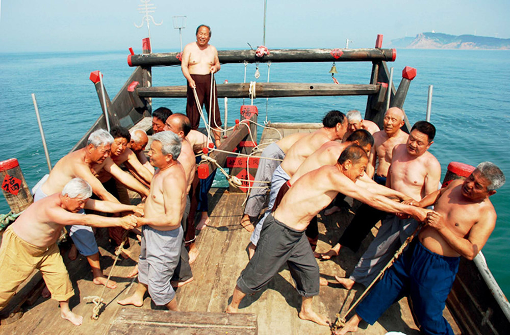 渔民号子是一种劳动号子,源于海洋渔业劳动的一种民间原始音乐,也是渔民在长期的生产劳动实践中,自发创造的海洋文化。它从最初劳动中有节奏的简单叫喊开始,经无数次的重复和文字口语化的传承,逐渐产生了音韵和曲调,最后形成了有节拍、有文字、有名称的船工号子,具有了一定的文学和审美价值。 胶东渔民号子起源于长岛北端的砣矶岛,距今已有300多年的历史,是风帆时代渔民的闯海之歌。 随着渔业的不