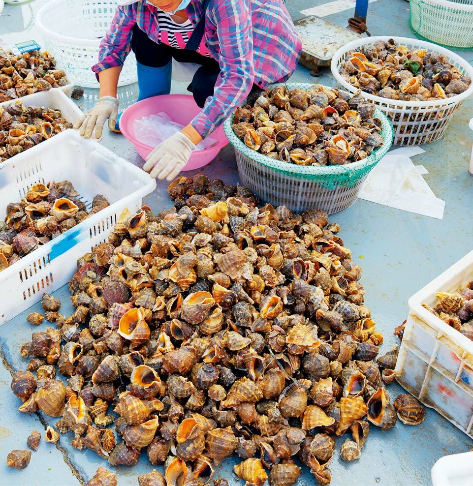 海螺,浅海螺类,喜食贝类,生活在贝类生长的海域。渔民钓海螺,用长绳拴一大串网兜,内装贝类做诱饵,隔夜,便有海螺吸附上去,提上来就是收成。 在浅海潜水收获海螺,要认准两点:一是生长海蛎子的地方。海螺根部驻扎在礁石上,开囗向上,用强有力的肌肉包住海蛎子呼吸处,让海蛎子窒息死亡,然后吸食它们的体液。二是有众多面蛤的水下砂石区。海螺可以蠕动着钻进泥沙,把潜伏的面蛤捉住,抱在怀里用同样的方法吃掉。 每年