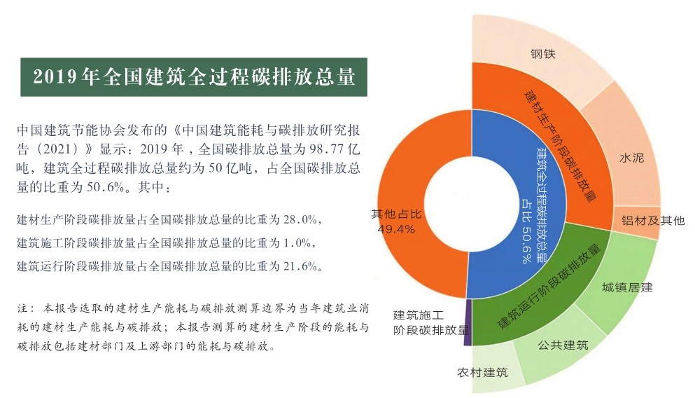 我国力争2030年前实现碳达峰、2060年前实现碳中和,是着力解决资源环境约束突出问题的必然选择。“双碳”战略倡导绿色、环保、低碳的生活方式,2019年相关数据显示,建筑领域作为社会能源终端大户,其碳排放占比竟然超过了社会碳排放总量的50%。如果建筑业不走绿色转型和高质量发展道路,势必会在一定程度上影响“双碳”目标的实现。 “十四五”时期是碳达峰的关键期、窗口期。建筑领域开展“双碳”工作,可以从