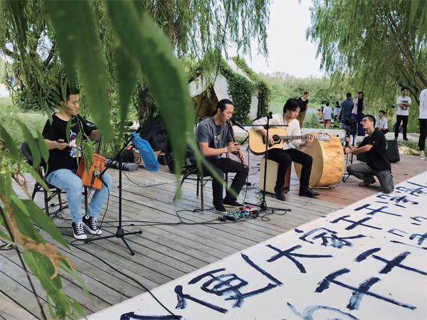 艺人 稻草人 田野音乐会、稻草人时装秀、露天电影、稻田摄影展……当我看到计家墩的这些活动安排时,瞬间被吸引了。 计家墩位于江苏省昆山市锦溪镇,从上海开车过去,一小时就可抵达。如今交通便捷,旅游业蓬勃发展,节假日城市景点人山人海。此时逆行去乡村,活动起居都在村里,汽车不需要开来开去,回归吃饭、打牌、散步的节奏,我以为,这才是真正意义上的休假。 田野音乐会 计家墩有连绵不绝的稻田,如今被打造