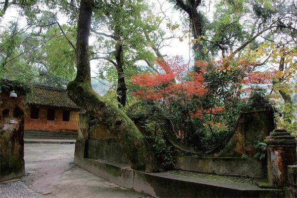 古树 浙江天台国清寺就像一个低调素朴的古莲,淡雅、内敛、安静。见多识广的文友们却在闲谈间总是夸赞其“古雅清宁”,这让我心生向往。 在一个橙黄橘绿的秋日,我终于一睹国清寺的丰采。 “五峰层叠郁苕绕,双涧回环锁佛寮。”要见到国清寺的真容,需走过一条长长的进寺路。远处,峰峦叠嶂,山岚氤氲,在翠绿的铺陈中点缀着赤橙黄紫等丰富的色彩。白墙黛瓦的民居掩映其中,是明亮中的一抹淡雅。田塍小路边码着的一个个圆