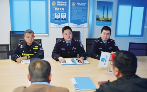 姚望(中) 路灯亮了,油坊桥的夜晚降临了,街巷商铺一下子被点燃。人声鼎沸中,下班的白领、谈笑聚餐的居民、往来穿梭的快递小哥……看着熙熙攘攘的人群,欣慰、感动夹杂着一丝骄傲涌上姚望的心头。 自从来到莲花派出所担任所长,下班后姚望总喜欢在辖区的这条街道走走,看看他和伙伴们守护的这片土地和土地上生活着的人们。在南京市建邺区的莲花社区,4.08平方公里的土地上生活着近10万人,外来人口占了60%以上。