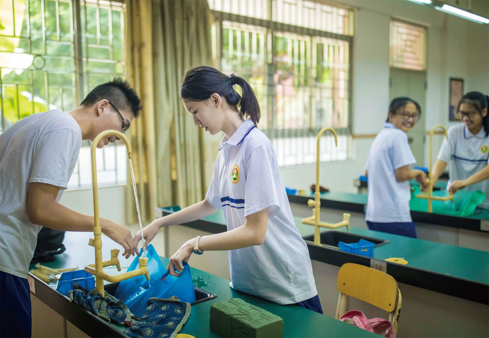 2018年8月15日,广州广雅中学生物社的同学们在清洗花朵,准备插花材料 “星空长什么样?人又该往哪里去?” 太阳落山以后,山、树、楼、河都埋在了黑影里,高一学生刘越经常思考这样的问题。过去一年间,他学着用望远镜,像是探险前先点亮一盏小灯,再来找寻人类命运与宇宙间的奥秘。 找星星的过程并不容易,有时仿佛人早早地坐在饭桌前,热气腾腾的饭菜还要很长时候上桌时的焦灼。天气变化、云层厚薄